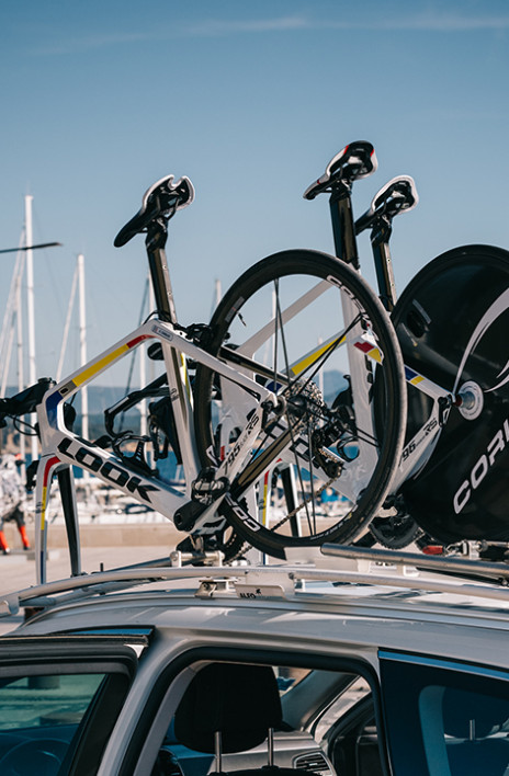 The HQ is a treasure trove for cycling enthusiasts. Rows of Blade bikes patiently wait in their locked containers, dozens of Sram Red cranksets await their EXAKT pedals, washing machines are turning, full of blue team outfits, and there’s no rest for the coffee machine. While the mechanics are busy assembling the bikes before they leave the next day for the Bessèges race, we visit the new team bus, recently adapted to fit in all the new equipment. Inside, everything is perfectly organised and made to measure. The road bikes have their own space, the time trial bikes have theirs too and the most amusing is the space dedicated to the wheels. From the outside, there is access to a hose pipe and a generator. The ‘beast’ is ready to criss-cross France, and more!