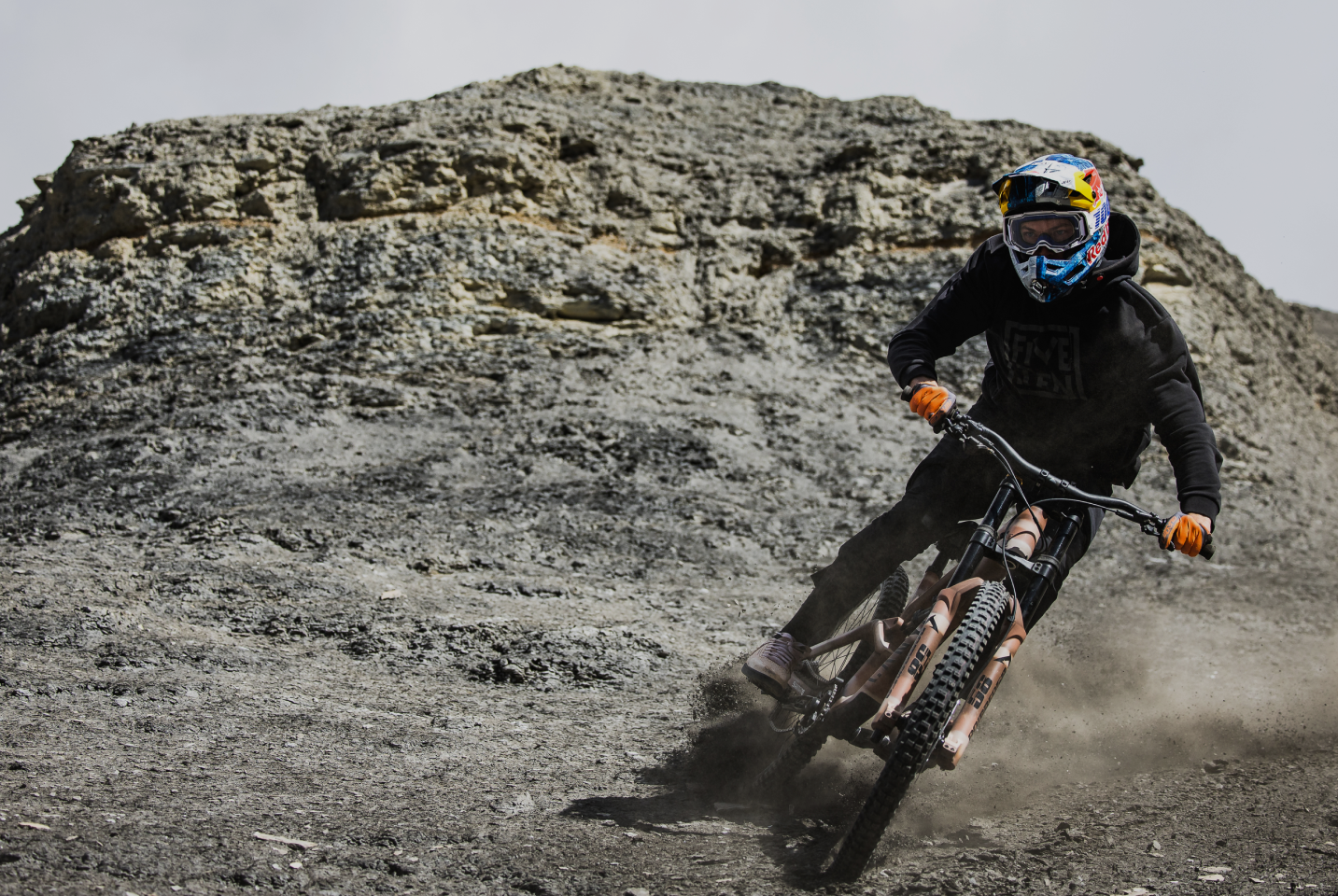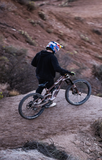 Thomas a pu tester et valider la solidité de la cage en alu forgé et la fiabilité totale des roulements et des axes à l’occasion de sa participation à la Rampage 2021.