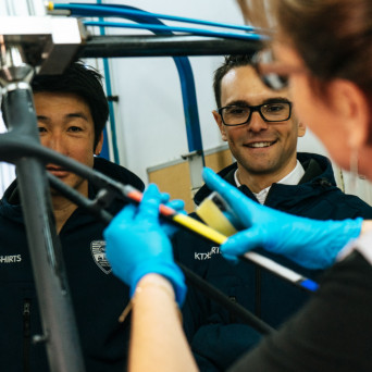 Fumiyuki Beppu: "It's very impressive. We are professional cyclists, yet we rarely get the opportunity to see how are bikes are actually made. It's important to know where the products we use come from. For example, the 785 we see here is the one I will be riding for Paris-Roubaix. Equipment is crucial in a race like that. The 785 is reactive, the disc version is very sturdy, flexible and comfortable on the cobbles. Seeing all the tests gives you a lot of confidence in the bike."