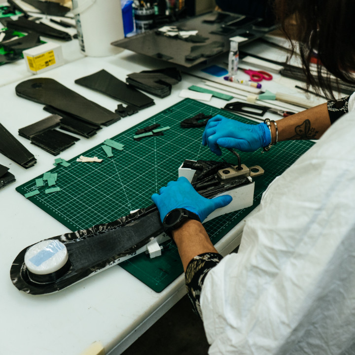 Sylvie meets us there. She has been part of the LOOK family for 15 years, and has worked in the carbon workshop for the last 3. The different parts (nearly 400 for the 785 HUEZ RS) are assembled following a highly precise plan: the "layup". There are no machines here, everything is done by hand.